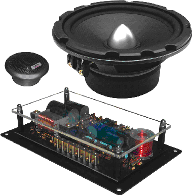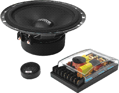 165mm High End Composystem 2x 220/140 Watt, 38mm, Schwingspule, Phaseplug, 165mm Normchassis, hochfester Gusskorb, Weiche mit über 1000 Einstellmöglichkeiten, Gewebe/ Fiberglas/ Papiermembran Einbautiefe 67mm