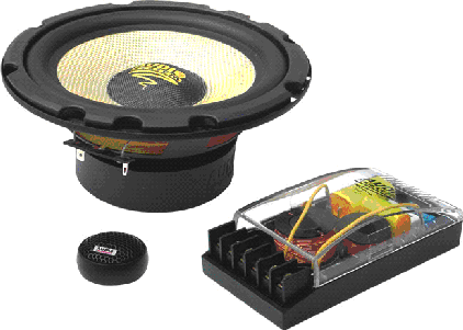 165mm High End Composystem 2x 220/140 Watt, 38mm, Schwingspule, Phaseplug, 165mm Normchassis, hochfester Gusskorb, Weiche mit 168 Einstellmöglichkeiten, Gewebe/ Fiberglas/ Papiermembran Einbautiefe 67mm